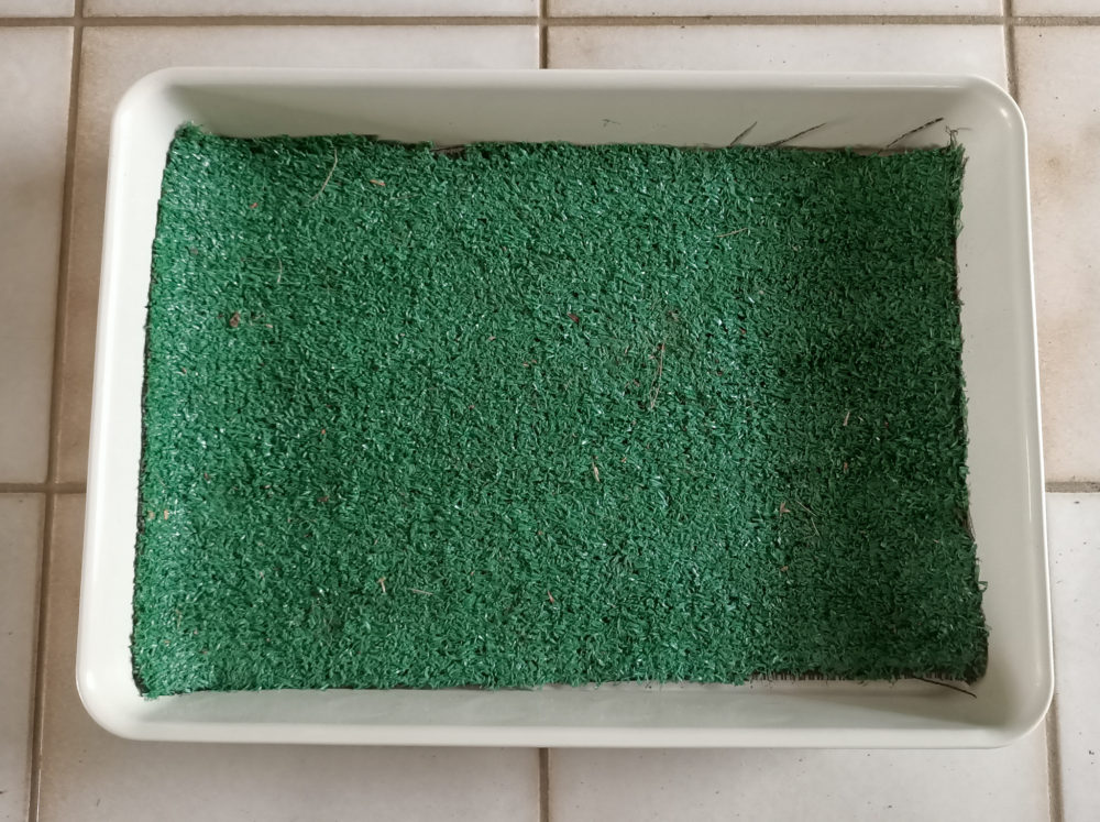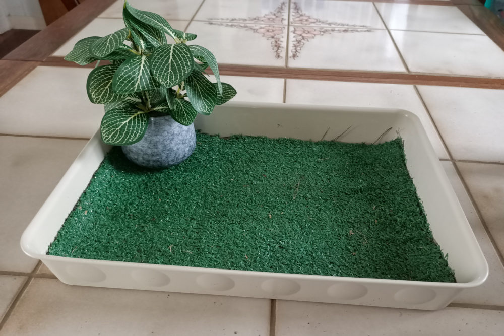 - Place artificial grass into base of tray.